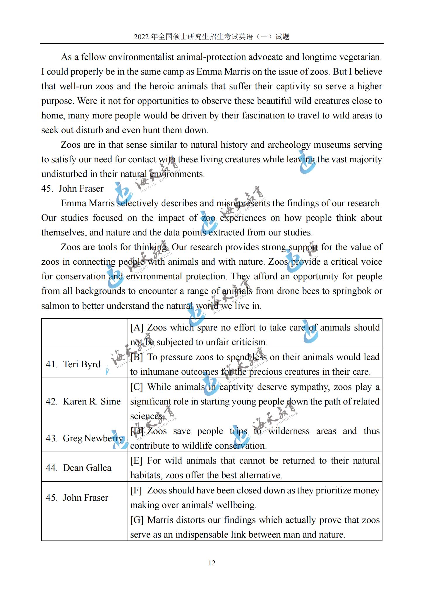 2022考研英语一真题原文完整版