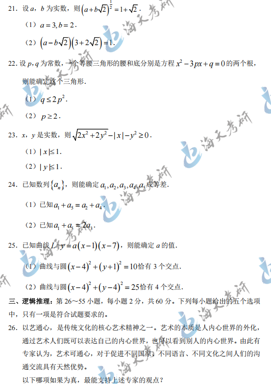 以上就是海天考研网为各位考生整理的2025考研管理类综合能力真题汇总完整版,持续为考研学子更新考研政治、数学、英语、396考研真题及答案解析等,各位考生可以根据自身需要关注收藏,及时查看完整版2025考研真题及答案解析。